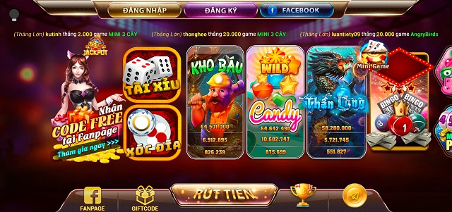 + Game slot đổi thưởng như Thần Long, Kho Báu, Vua Chọn Số, Đại chiến siêu chim.
