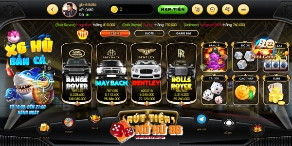 Khi vừa vào game anh em sẽ bị choáng hợp bởi hình ảnh siêu xe đại diện cho mỗi trò chơi từ maybach, range rover, bentley, rolls royce. Đúng thật được đầu tư bởi một tập đoàn lớn nên hình ảnh tại đây cũng bắt mắt đến lạ. Phải chăng các hình đại diện siêu xe nhà sản xuất đang ngụ ý về các phần thưởng lớn giúp anh em game thủ tại đây đổi đời?