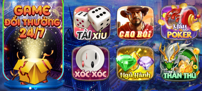 Mini game: Tài xỉu, Cao bồi, Máy poker, Xóc xóc, Ngũ hành, Thần thú.